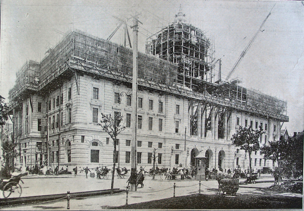 Information data : The Hongkong & Shanghai Bank (滙豐銀行 - Huifeng yinhang - HSBC) opened its Shanghai branch in 1865. It moved into its own building, designed by the architect William Kidner, on a site next to the Maritime Customs, in 1875. The modern building was completed in 1923. (Frank King et al., History of the Hongkong & Shanghai Banking Corporation, I: 94, 255.