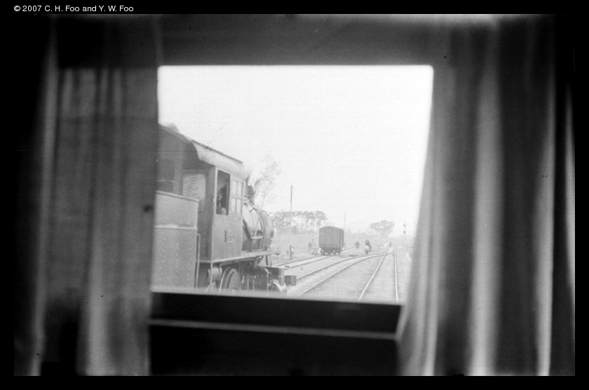 Title : A locomotive viewed from another train
