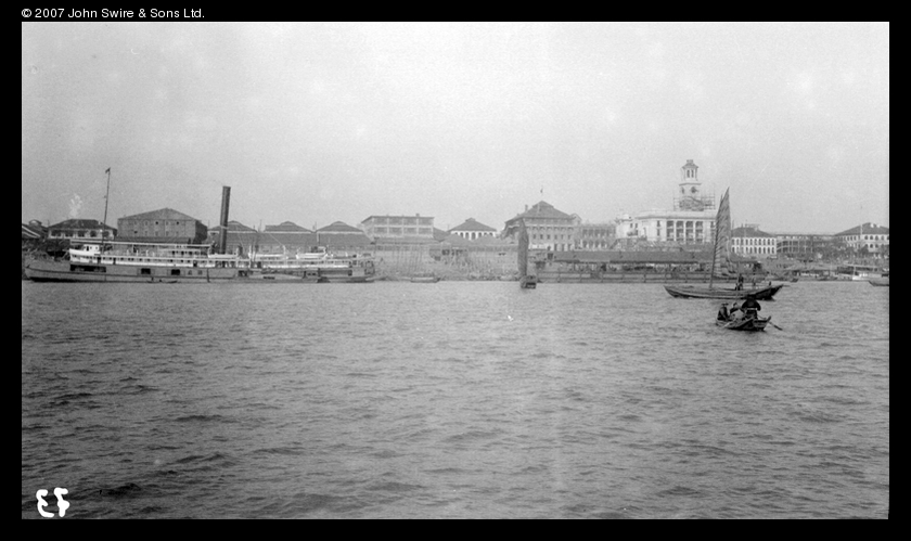 Information data : University of Bristol - Historical Photographs of China reference number: sw06-004. GW Swire referenced each negative in this album with the prefix F written in Indian ink. This negative is referenced F3. The album itself has also been archived at some stage with the reference P1/VIII. The white building on the right is Customs House.