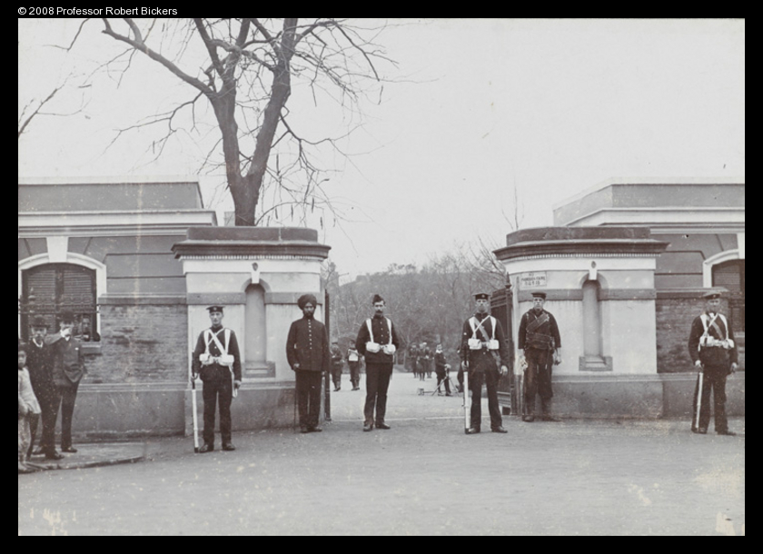 This photograph might have been taken in Shanghai, or Tientsin (Tianjin)? Perhaps the entrance to some British army barracks, parade or drill ground?