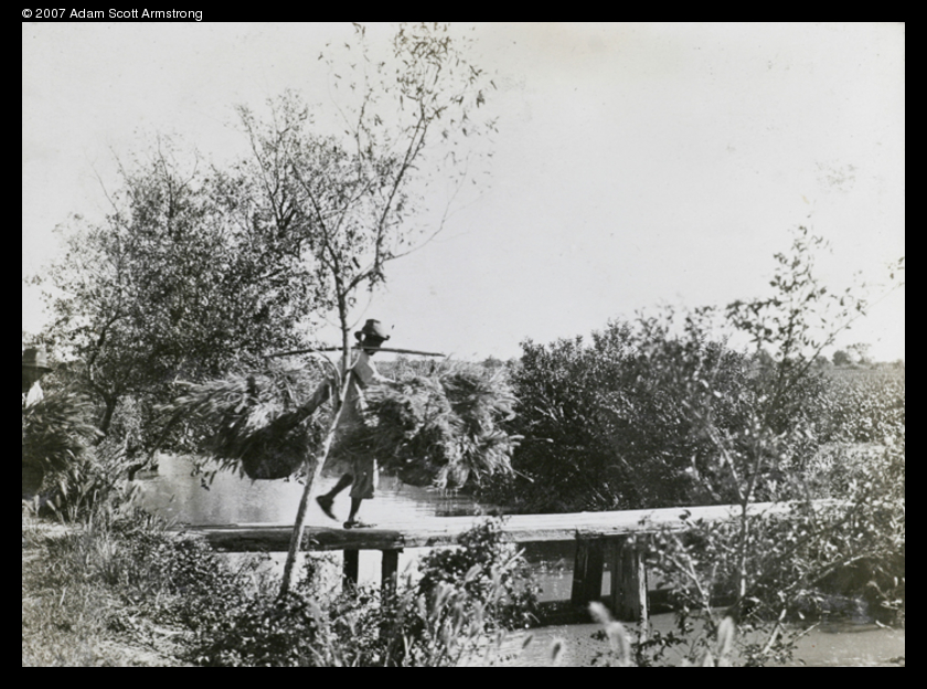 Title : Carrying straw across a bridge