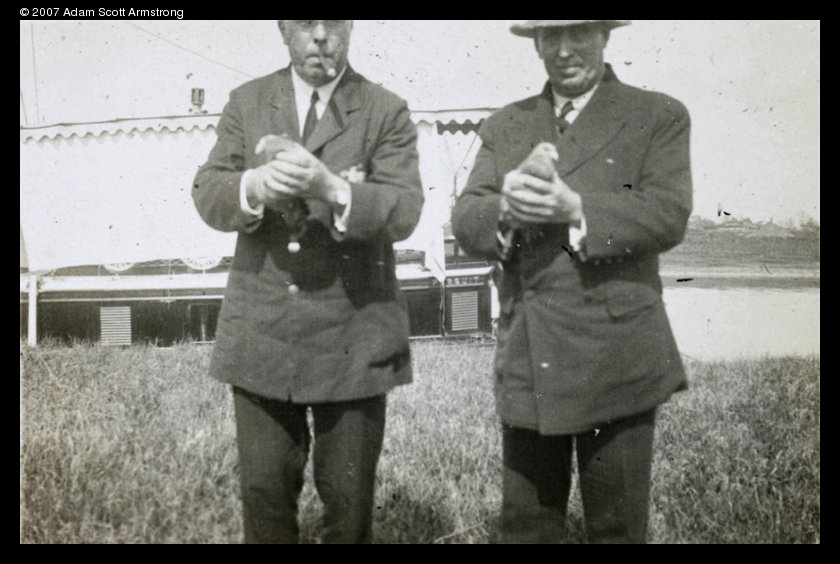 European men holding homing pigeons