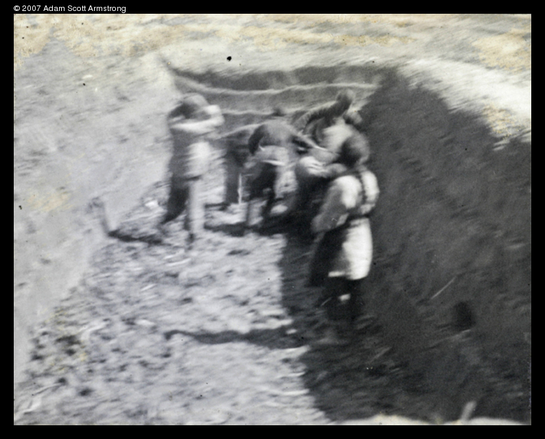 Title : People in a pit, with something