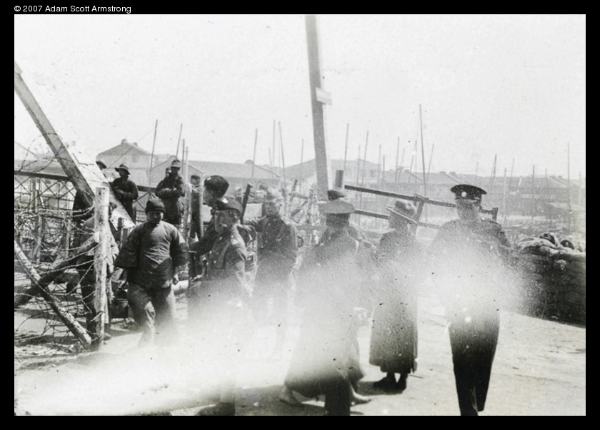 Police manning a barricade on a bridge, Shanghai, March 1927