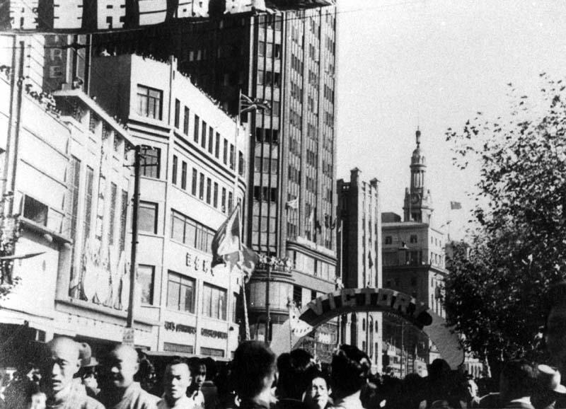 Street scene near the Park Hotel (Victory celebration)