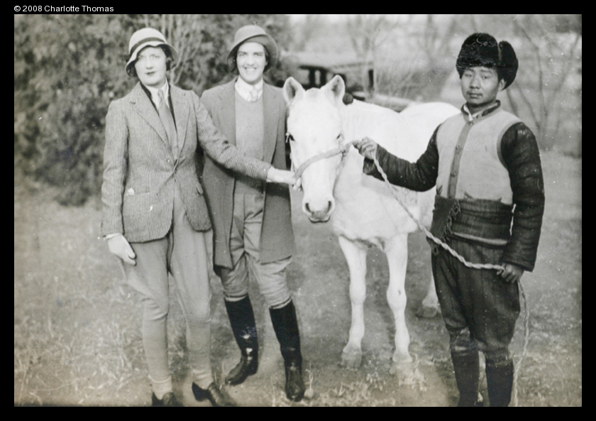 Vi Newall and Ann Phipps, with groom, c.1932-33