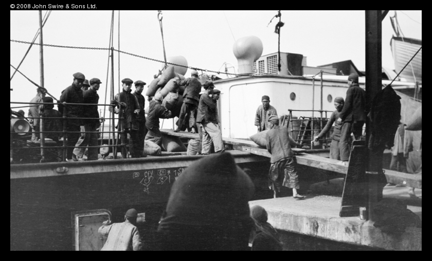 Dockers (un)loading sacks, Canton