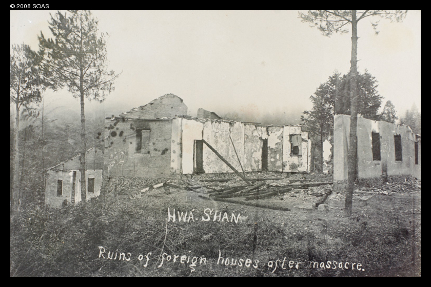Caption on print : HWA SHAN Ruins of foreign houses after massacre.