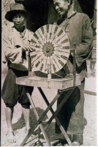 Information data : The lucky wheel (?????) was a game taken around by a peddler. First one makes rotate the wheel, then observes where the needle stops. One can win either food or small commodities.