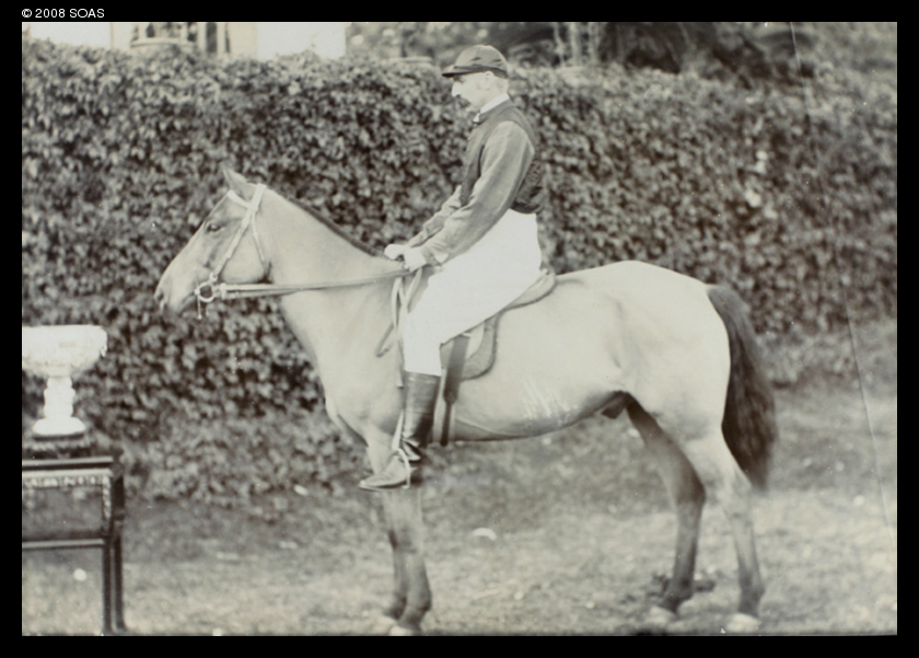 Title : J.C. Oswald on a horse, with trophy