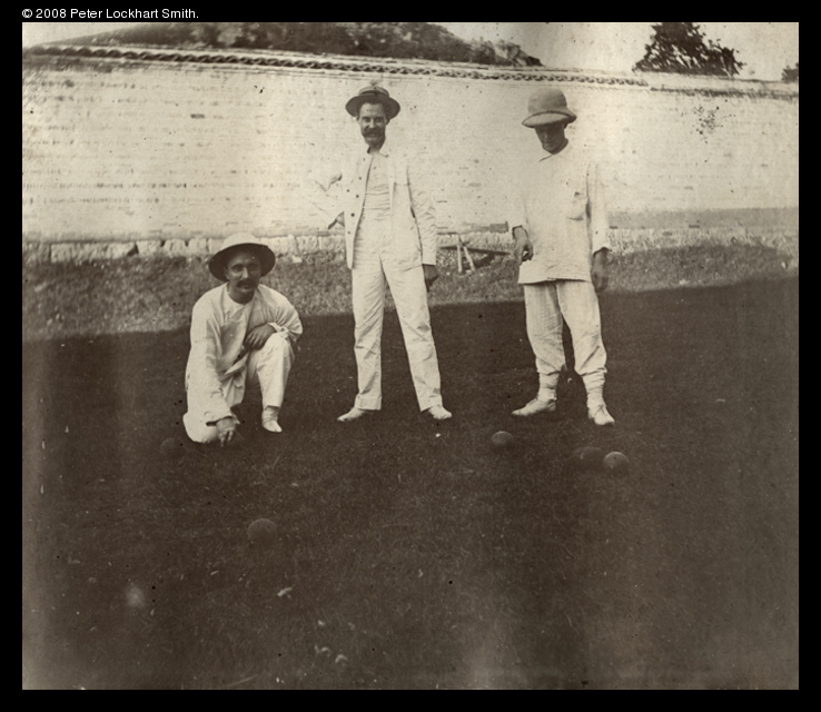 Title : Three foreign men playing bowls
