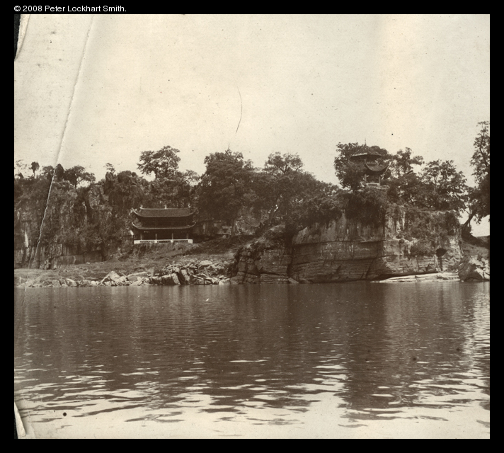 Title : Clifftop temple beside a river