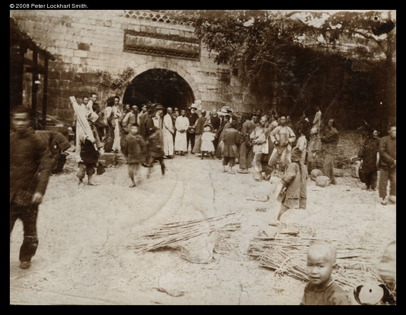 Chinese and Europeans beside a city gate