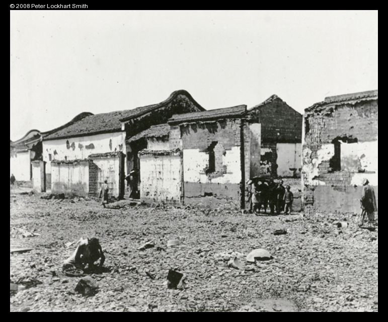 Caption on support : Effects of Fire near Mission House. Kweilin.