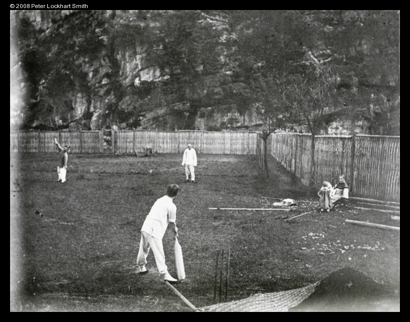 Byrde and Parker playing cricket in a garden, Yungchow