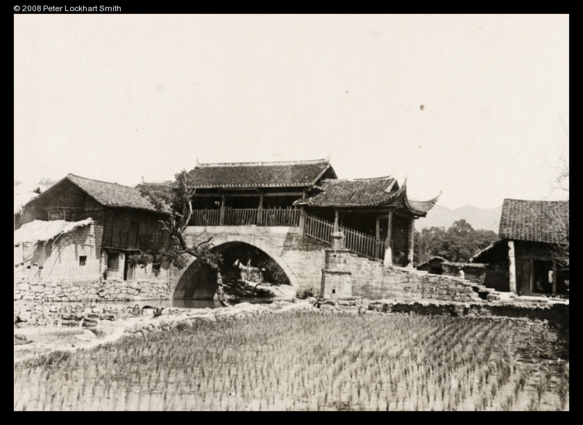 Title : Bridge, temple and paddy field, Hunan