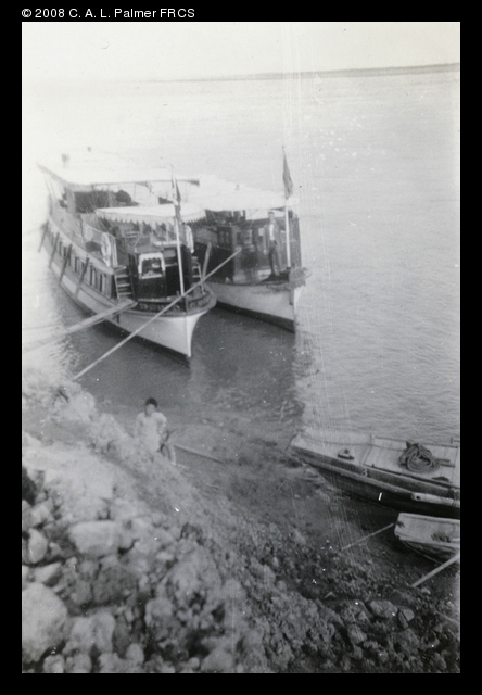 'Yingkuang' - Asiatic Petroleum Company (A.P.C.) houseboat on the left. 'Kingfisher II' - British American Tobacco (B.A.T.) houseboat on the right.