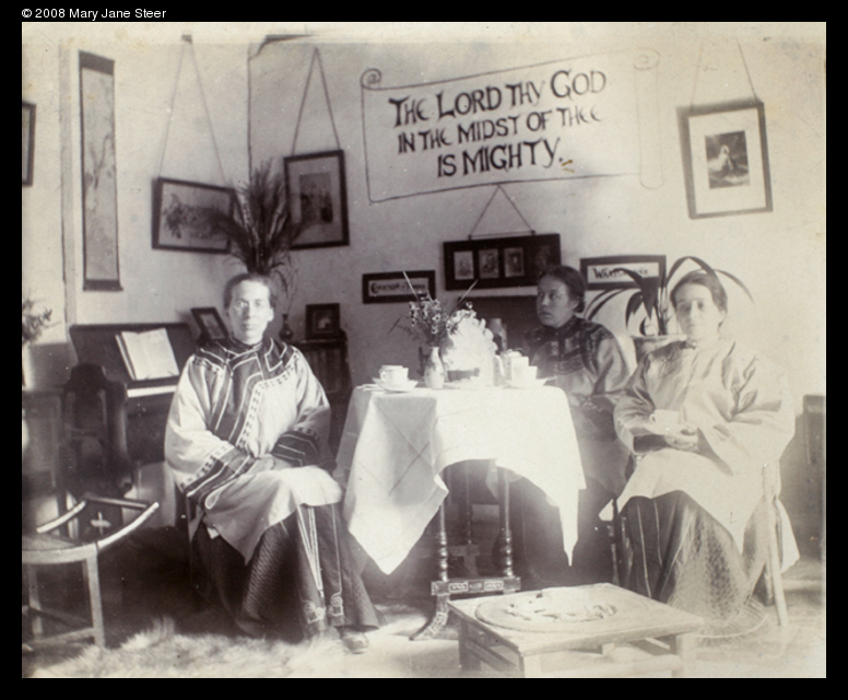 Also captioned "1907 Hill station at Sin-tien-tsi. On wedding trip. Mother in middle.”