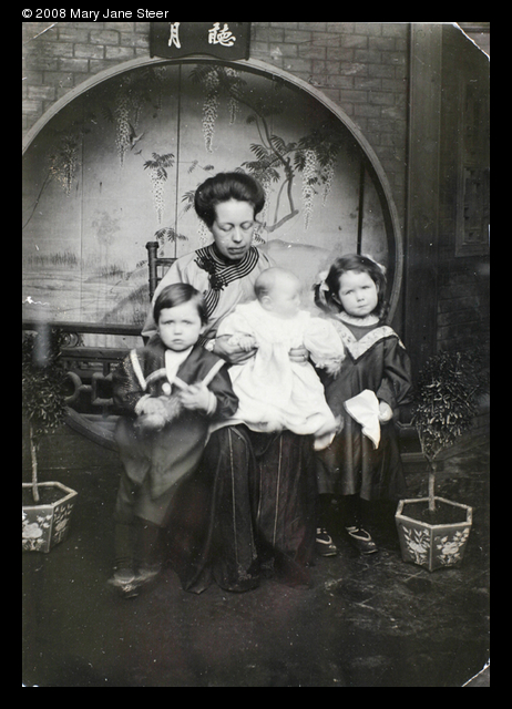 Mrs Elliott with Dare, Betsy and Charles, Paoning, 1911