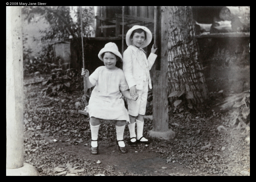 Dare and Evans Elliott under a walnut tree, Paoning, 1914