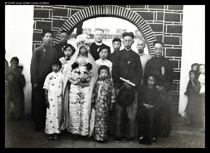 Caption on support : Group of Mr. Ma. The first Christian wedding to take place in the new church