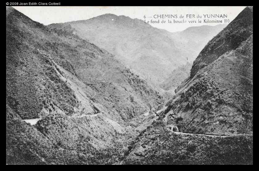 Caption on print : [on front] 6. – CHEMINS de FUR du YUNNAN. Le fond de la boucle vers le Kilométre 110.