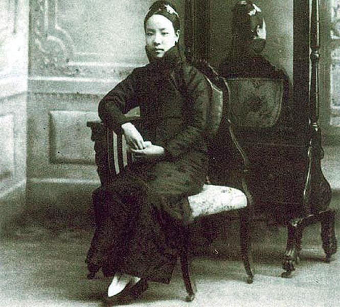 Information data : The young lady wears a winter qibao with very high nape. Her feet are not bounded, she is probably Manchu.