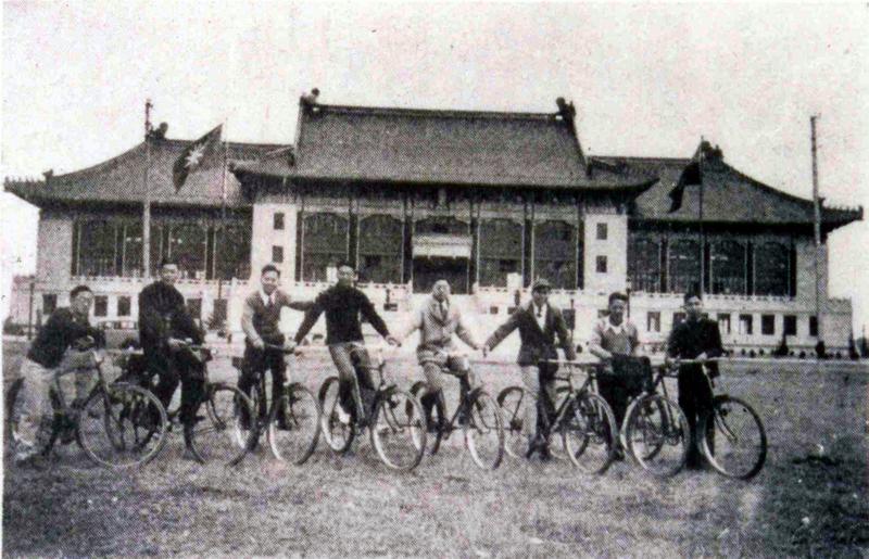 Information data : University students on a bicycle trip to the new administration building of the Greater Shanghai Municipality.