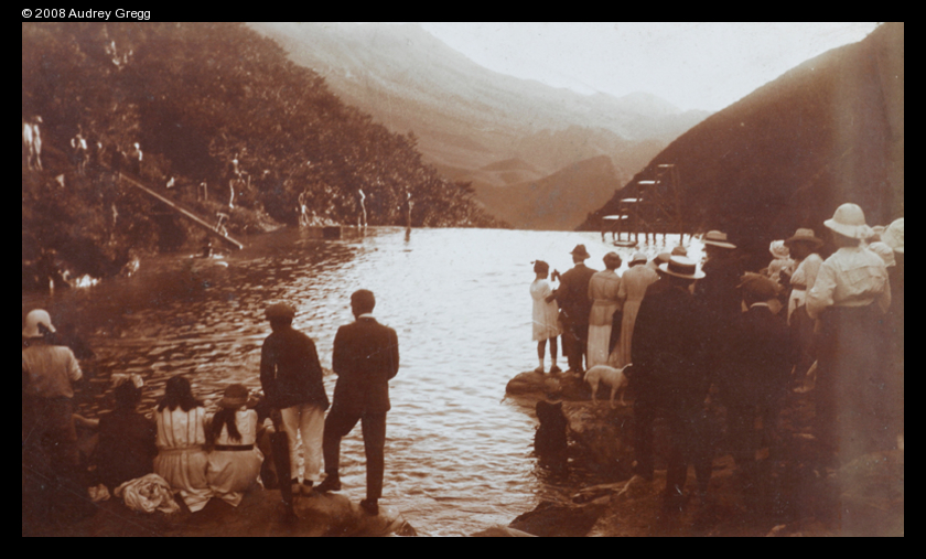 Title : Swimming event at a mountain pool