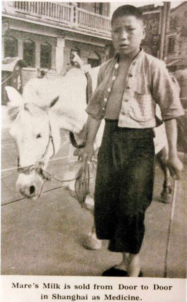 Caption on support : Mare's Milk is sold from Door to Door in Shanghai as Medicine.