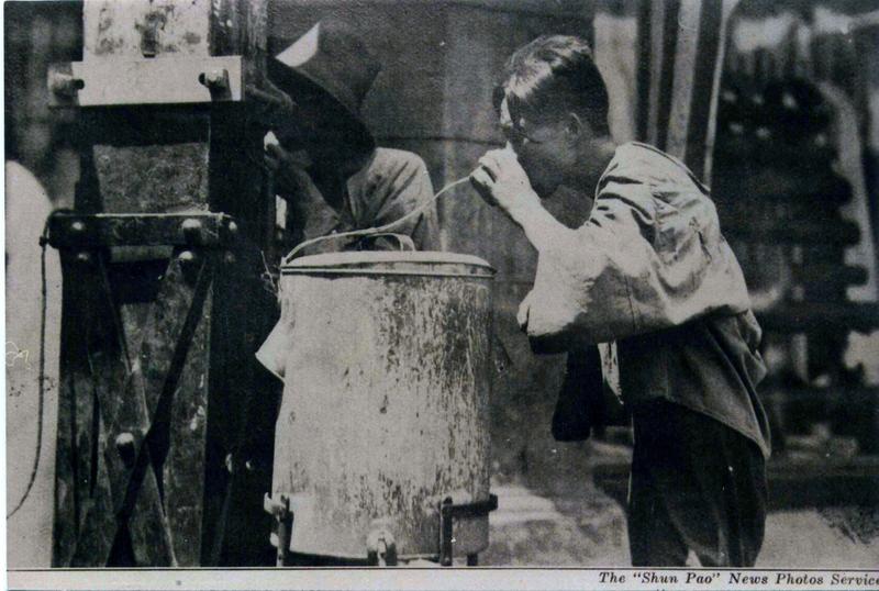 Information data : Coolies could drink tea for free at the corner of the street, where special containers were placed.