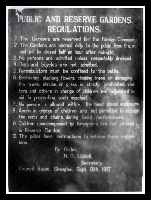 Public Gardens, Regulations, Shanghai