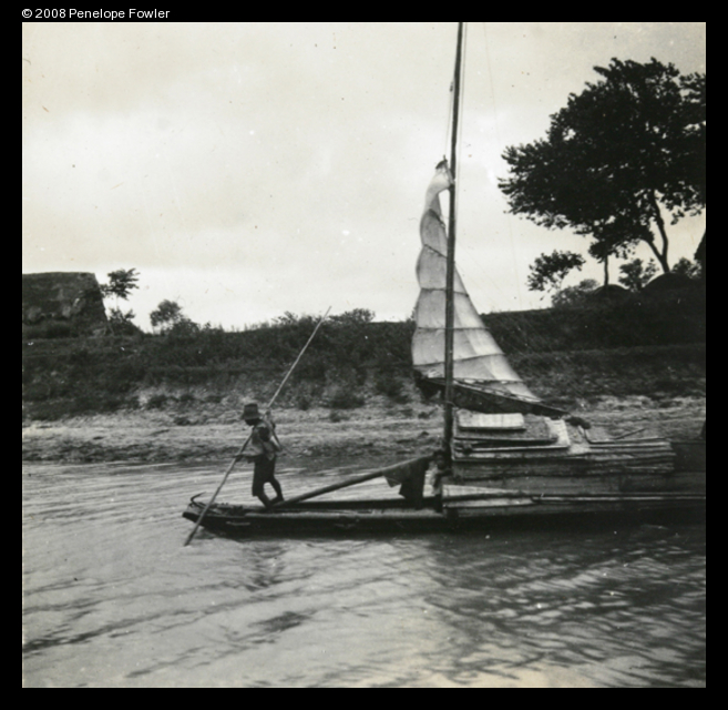 Keywords : Ruxton;sampan;boat;pole;river;bank;sail;navigation;transport