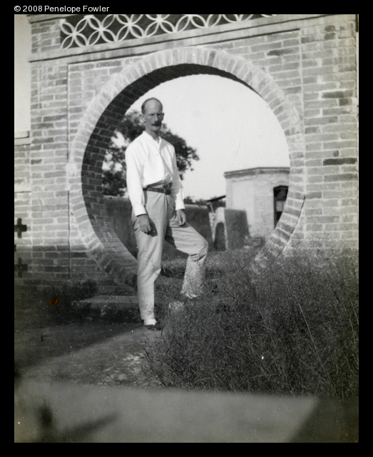 Colonel Ruxton by a moon gate