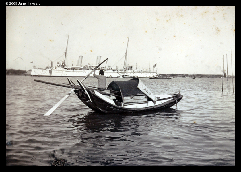 Sampan and H.M.S. Bonaventure, Shanghai, c.1900