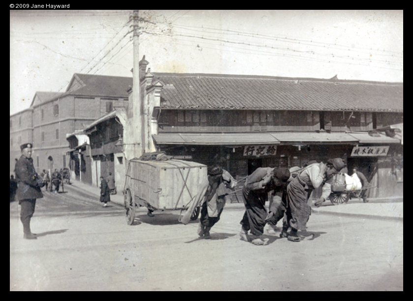 Hauling soap up Chapoo Road, Shanghai, c.1900