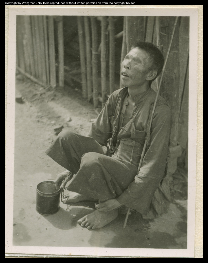 Keywords : beggar;blind;clothing;dress;box;stick;fence