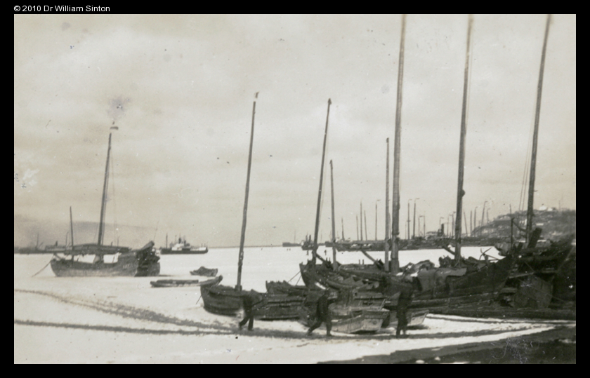 Junks in frozen harbour, Chefoo
