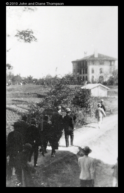 Sun Yat-sen walking towards a house