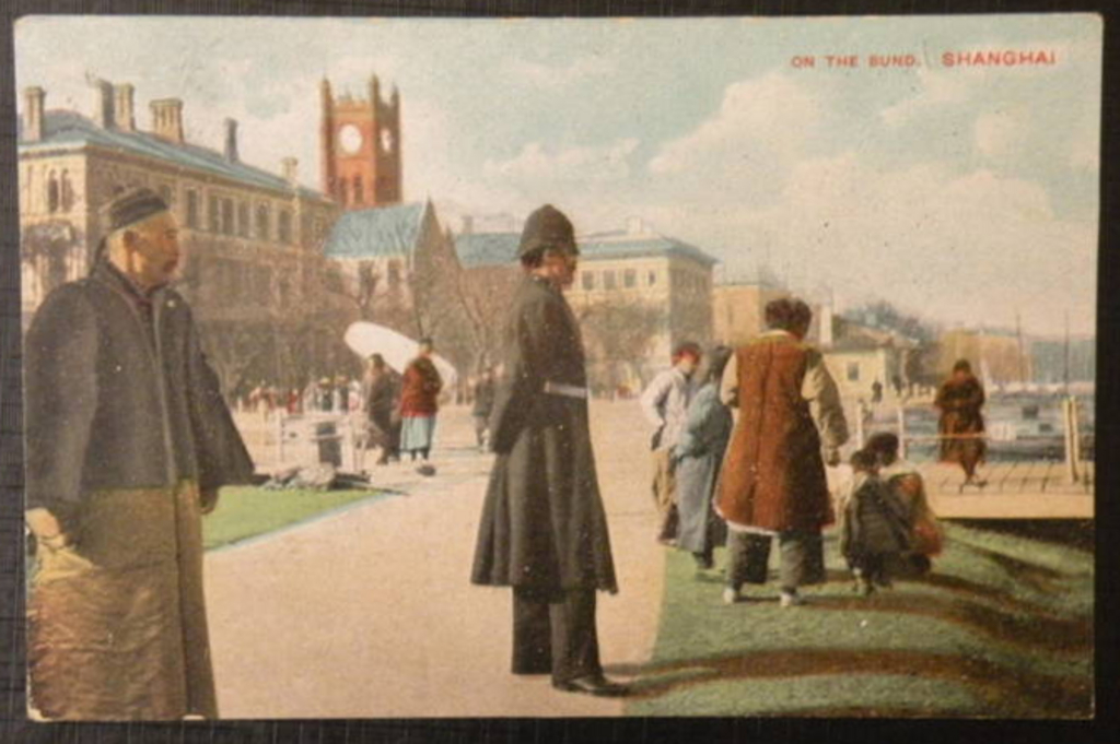 Keywords (fr) : building;Bund;policeman;pedestrian;dress;clothing;uniform;child;amah;servant;jetty;clock;postcard