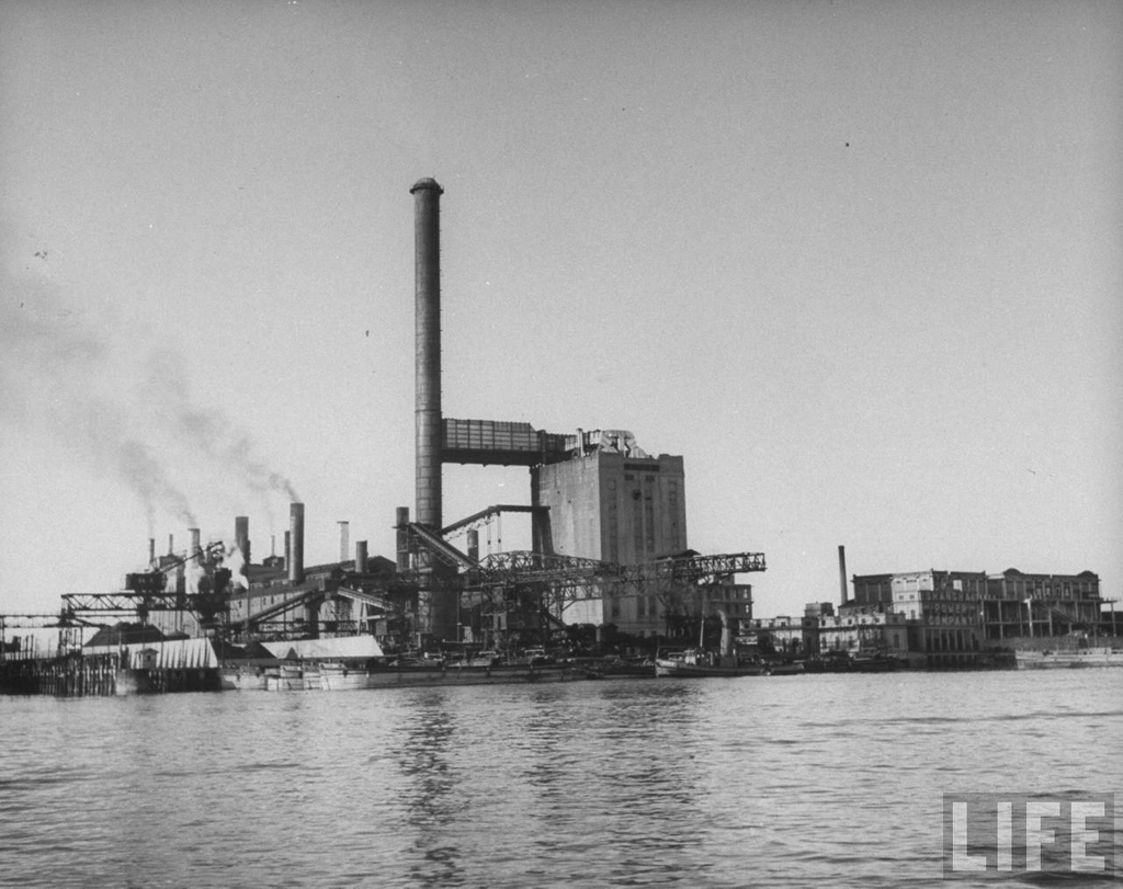 Caption on support : View of Shanghai Power Co. from Whangpoo River.