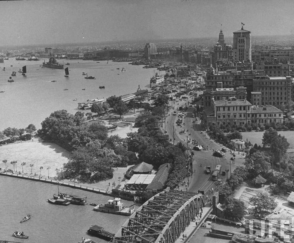 Keywords : Bund;building;river;Huangpu River;ship;boat;car;tree;Public gardens;park;sampan;bridge;flag