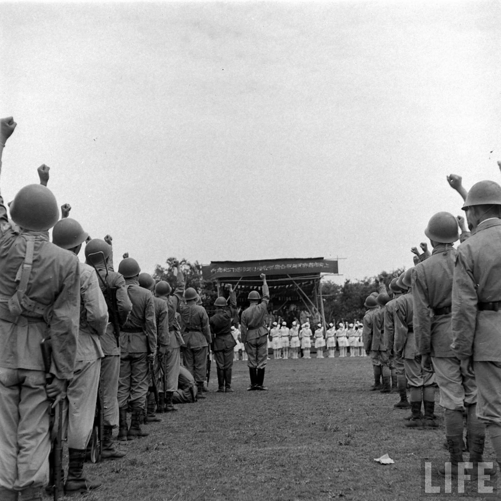 Keywords : demonstration;political;soldier;uniform;banner;woman