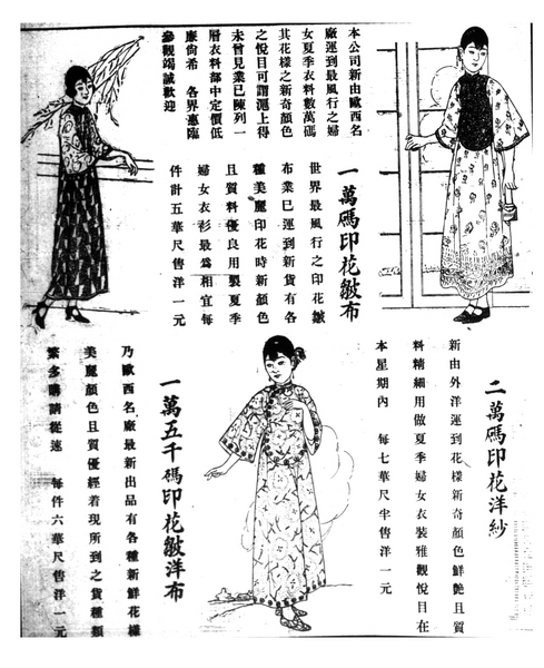 Keywords : Shenbao; 1926; female; advertisement; printed cloth.