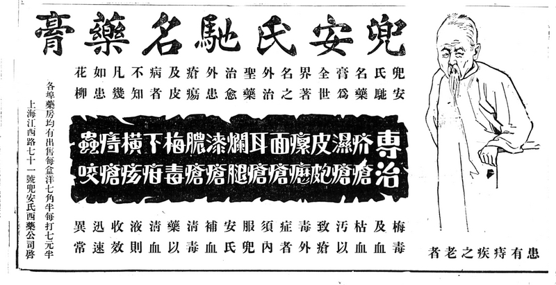 Keywords : Shenbao; 1928; male; advertisement; plaster applied to a wound; old man; health.