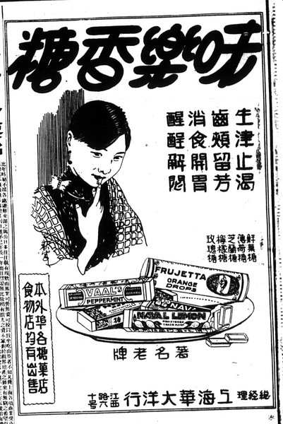 Keywords : Shenbao; 1928; female; advertisement; sweets; fruit drops.