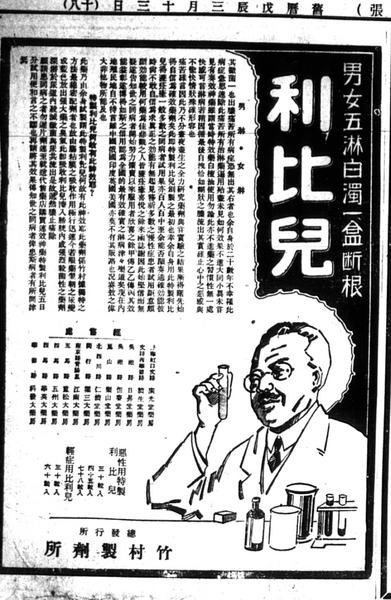 Keywords : Shenbao; 1928; male; advertisement; laboratory; test tube.