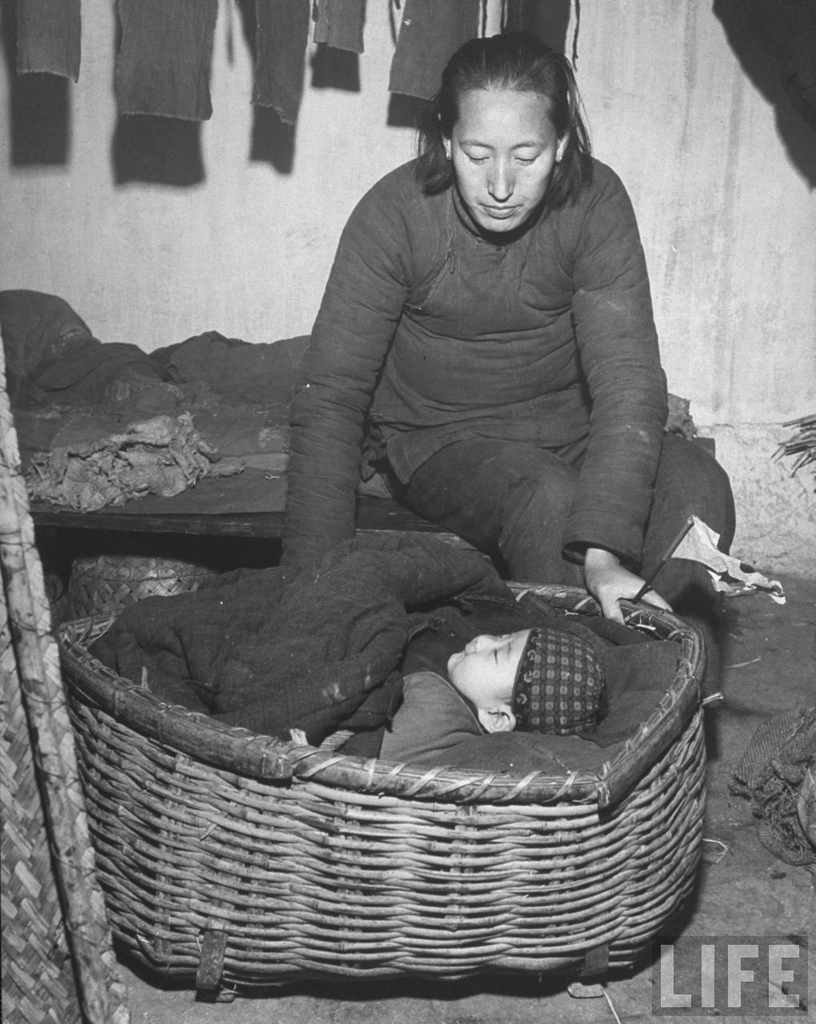 Keywords : child;dress;clothing;woman;poor;basket;crib