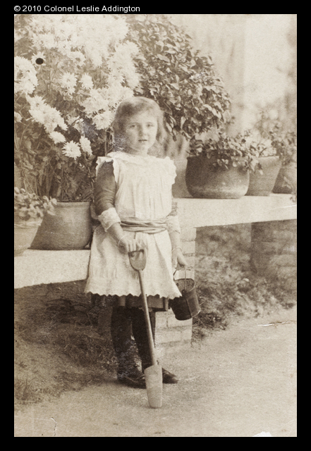 Title : Gladys Hughes with toy garden tools