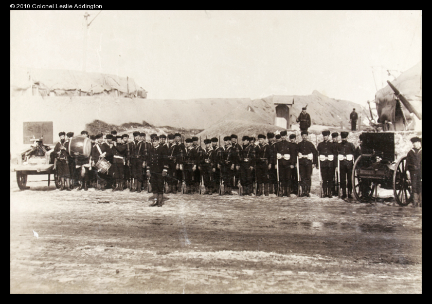 Caption on support : Two warships were docked in the mud banks of the river, to defend the Europeans of Newchwang. They were the American S.S. ‘Petrel’ & H.M.S. ‘Firebrand’. This is Capt. Carey & crew of the ‘Firebrand’.